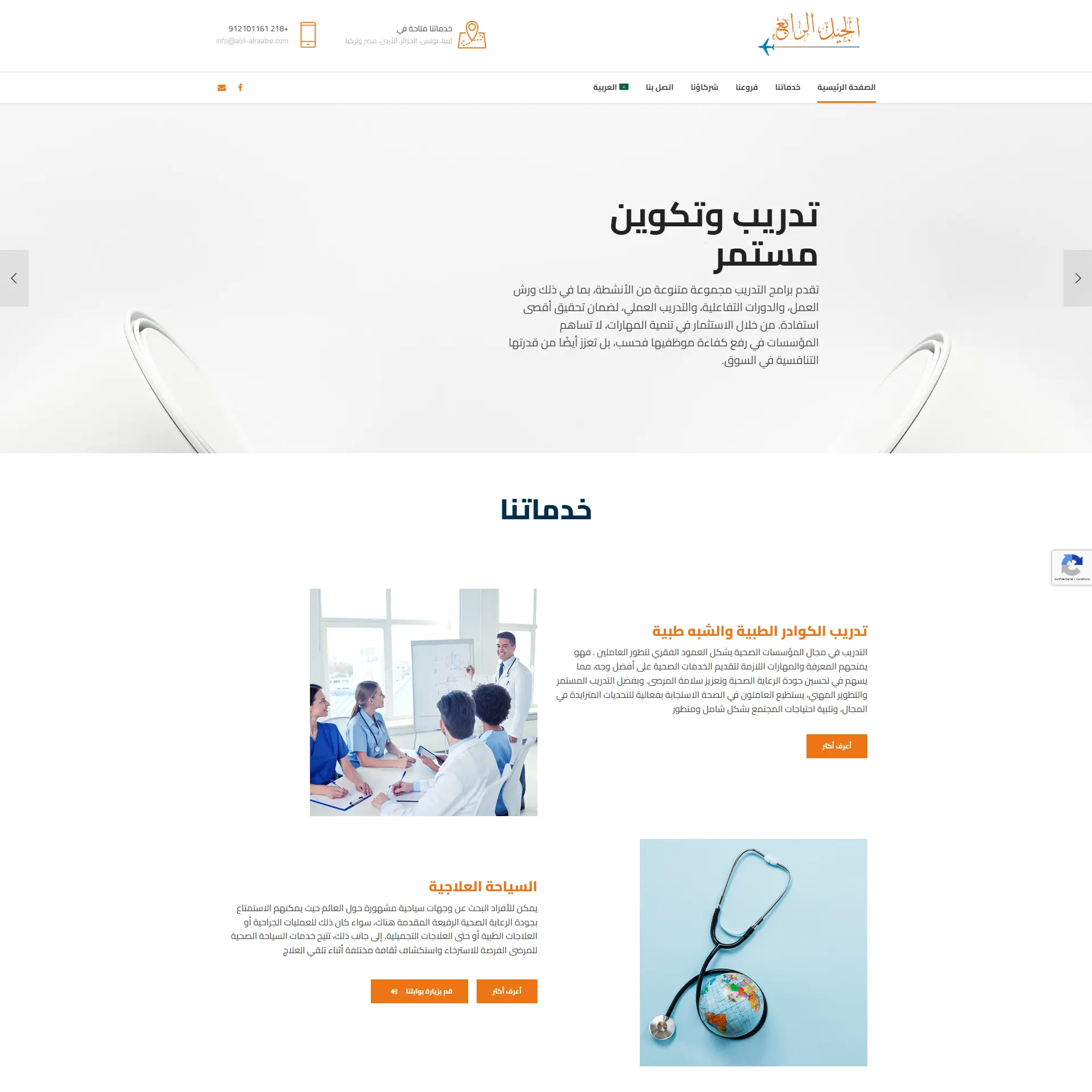 For Aljil alraabie, an entity operating in the health, tourism, professional services, and software sectors, we designed and developed a robust and centralized digital presence. The project aimed to solve the crucial problem of limited digital visibility and fragmented service presentation across Libya, Algeria, Egypt, Tunisia, Turkey, and Jordan.
